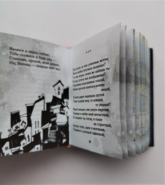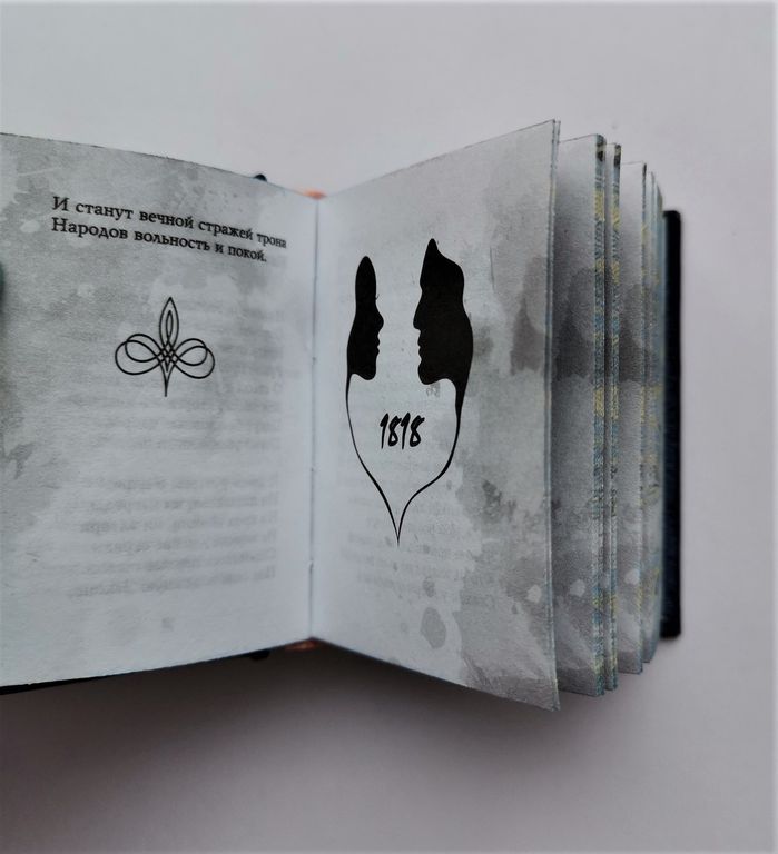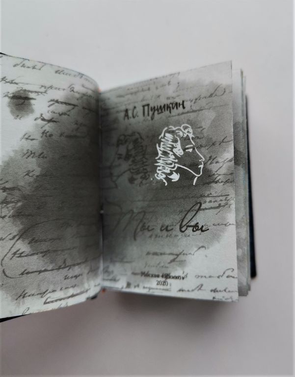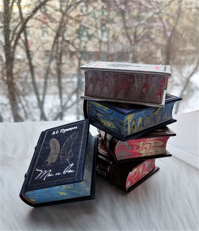 Миниатюрная книга в ручном переплете, мраморный трехсторонний обрез.