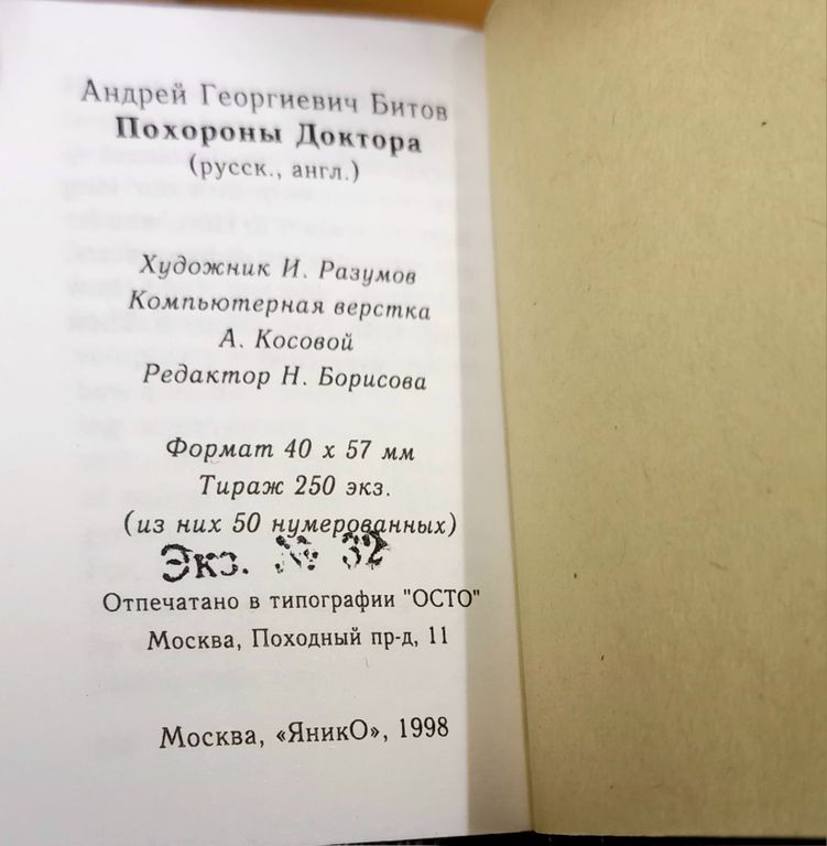 Книга была издана в 1998 году тиражом 250 экземпляров, из них 50 нумерованных.