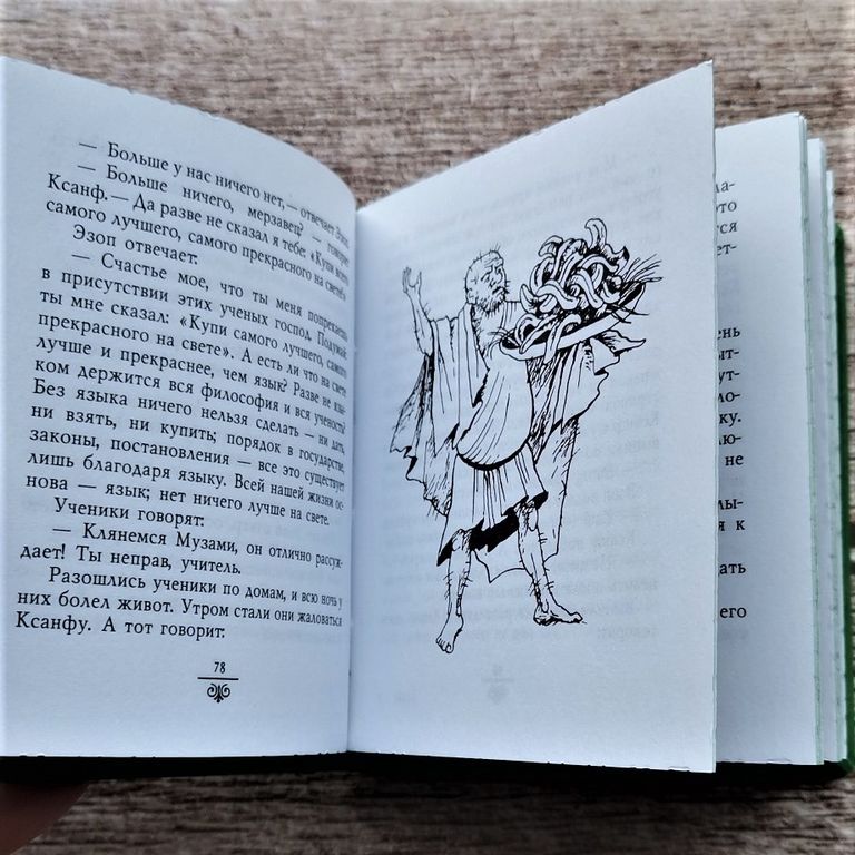 Миниатюрное издание содержит жизнеописание легендарного мудреца и острослóва - греческого раба Эзопа.
