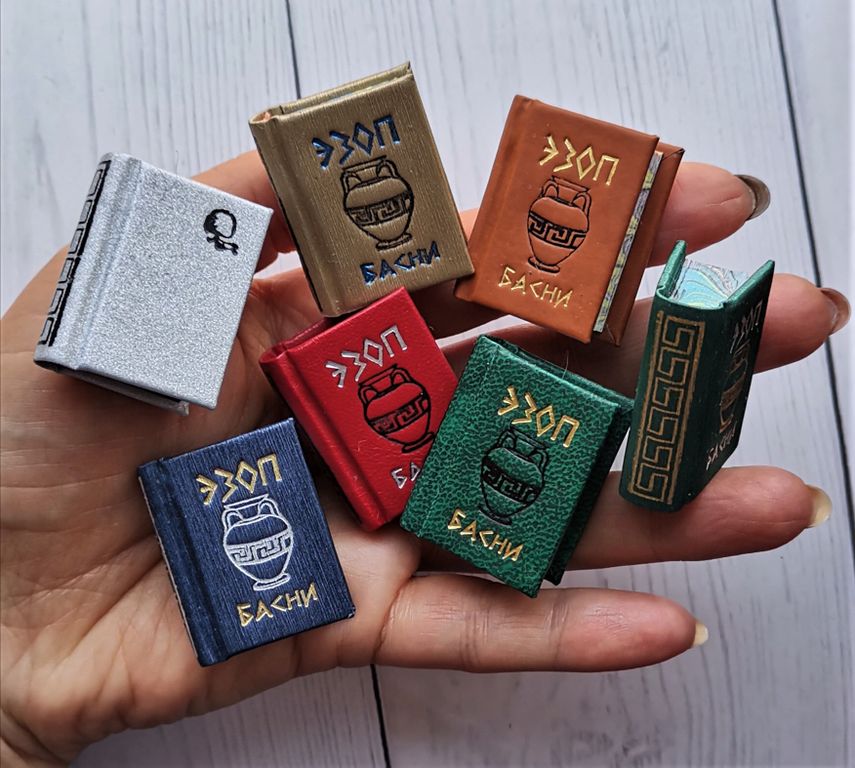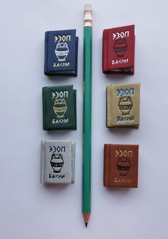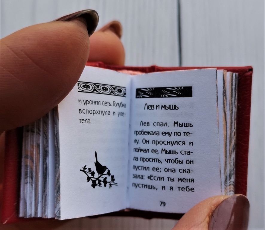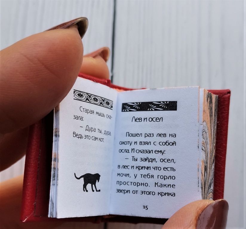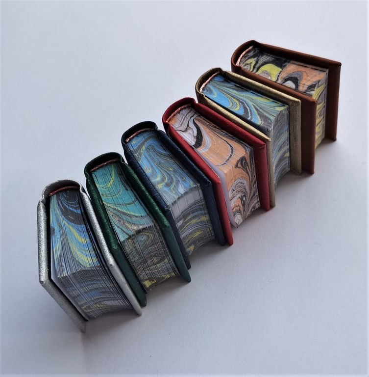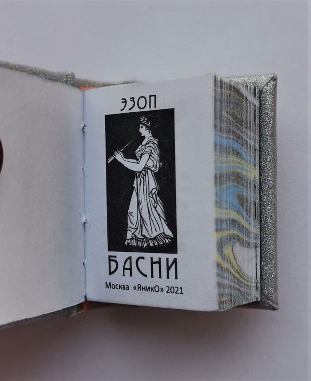 Миниатюрная книга в ручном переплете, мраморный трехсторонний обрез.