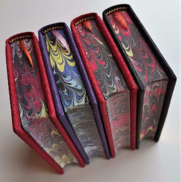 Ручной кожаный переплет, мраморный трехсторонний обрез.