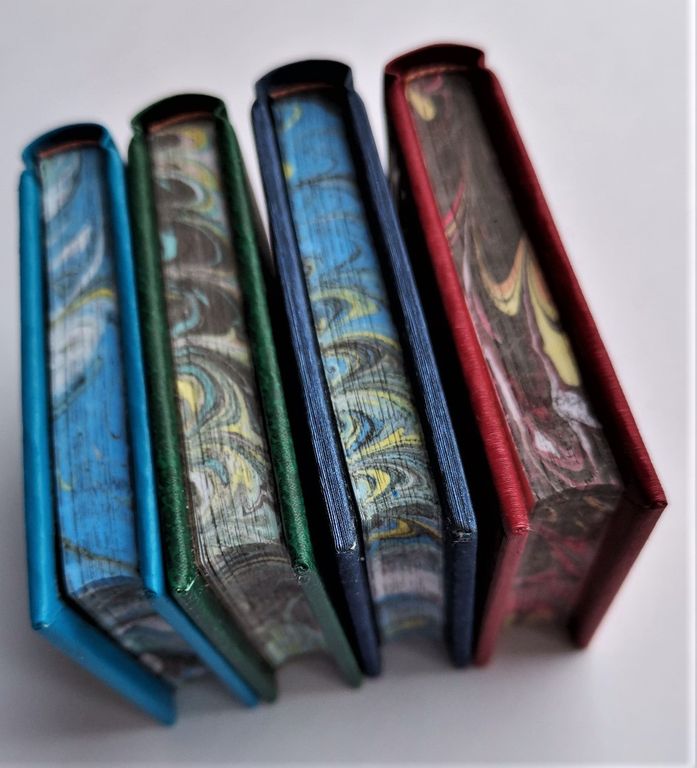 Миниатюрная книга в ручном переплете, мраморный трехсторонний обрез.