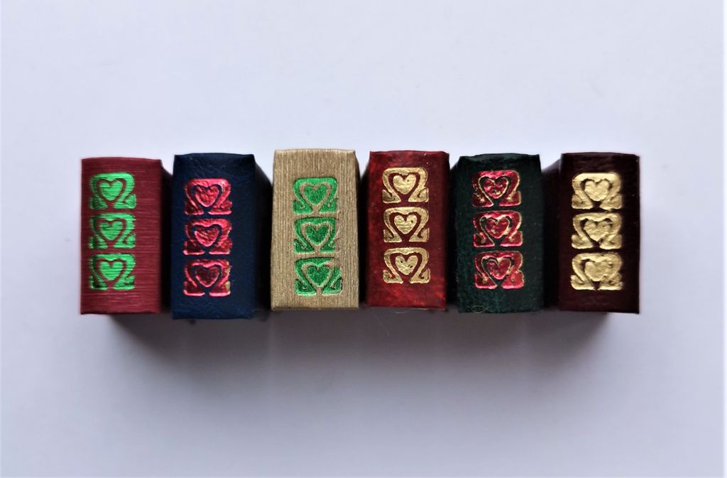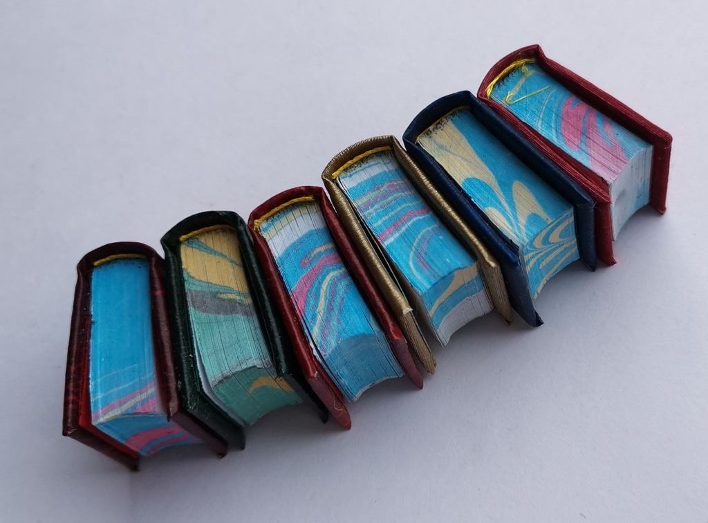 Миниатюрная книга в ручном переплете, мраморный трехсторонний обрез.