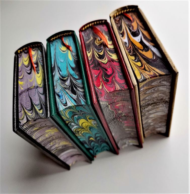 Миниатюрная книга в ручном переплете, мраморный трехсторонний обрез.