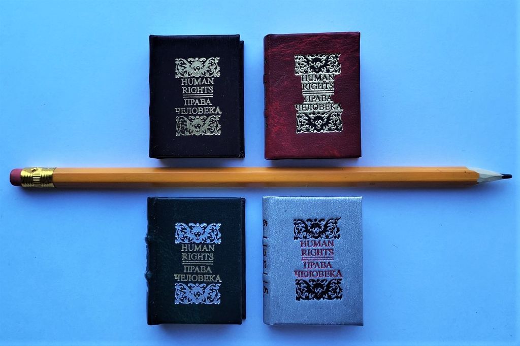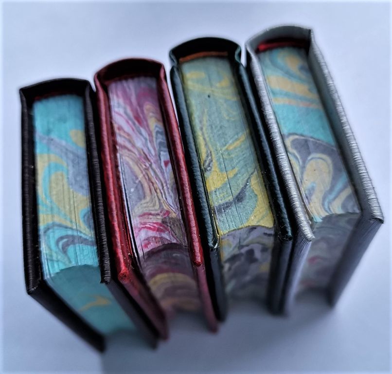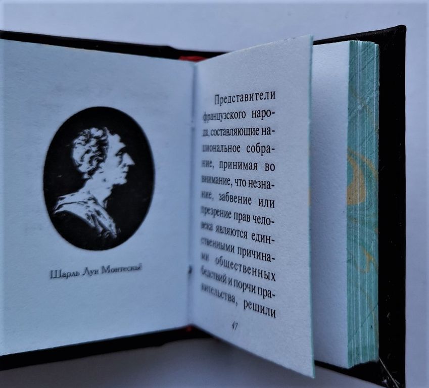 Миниатюрная книга в ручном переплете, мраморный трехсторонний обрез.