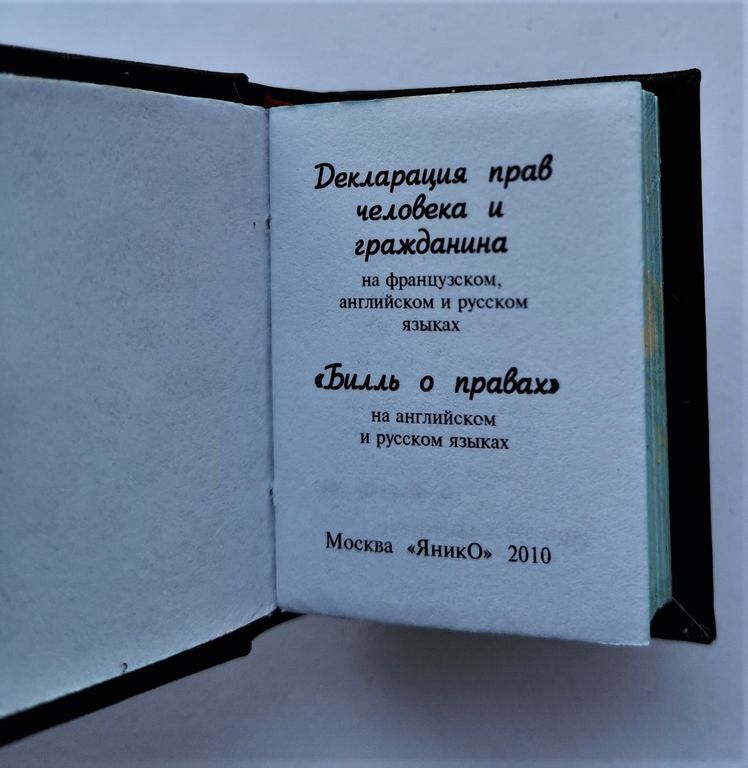 В книгу включены выдержки из «Декларации прав человека и гражданина» и первые десять поправок к Конституции США («Билль о правах»). Этими законодательными актами, первыми из ныне действующих, был утвержден приоритет прав человека в общественной жизни; они стали моделью для всех последующих Конституций цивилизованных стран.