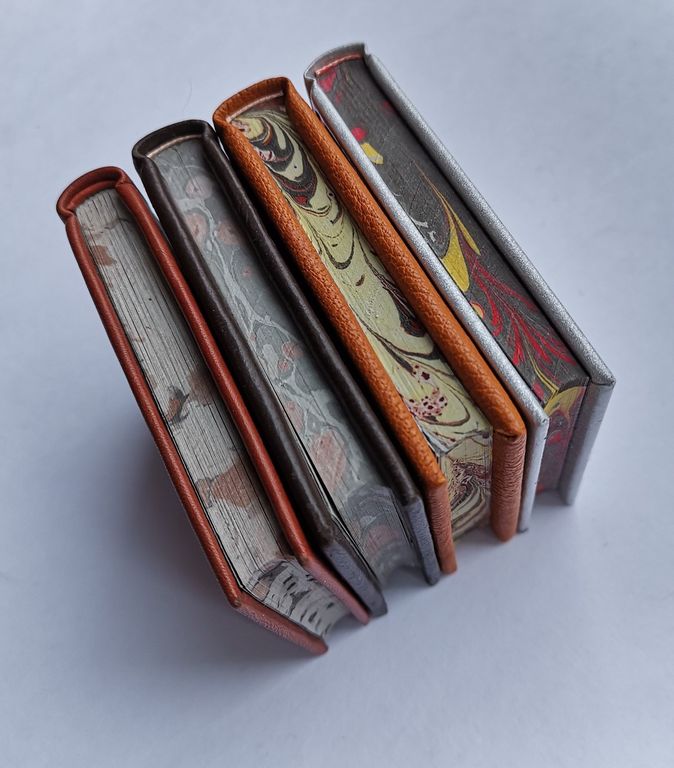 Миниатюрная книга в ручном переплете, мраморный трехсторонний обрез.