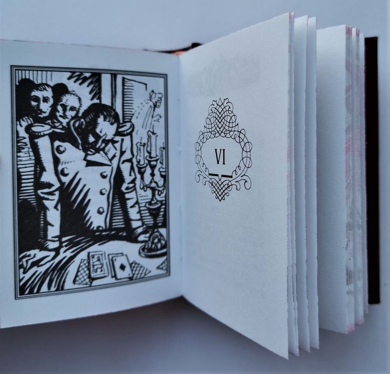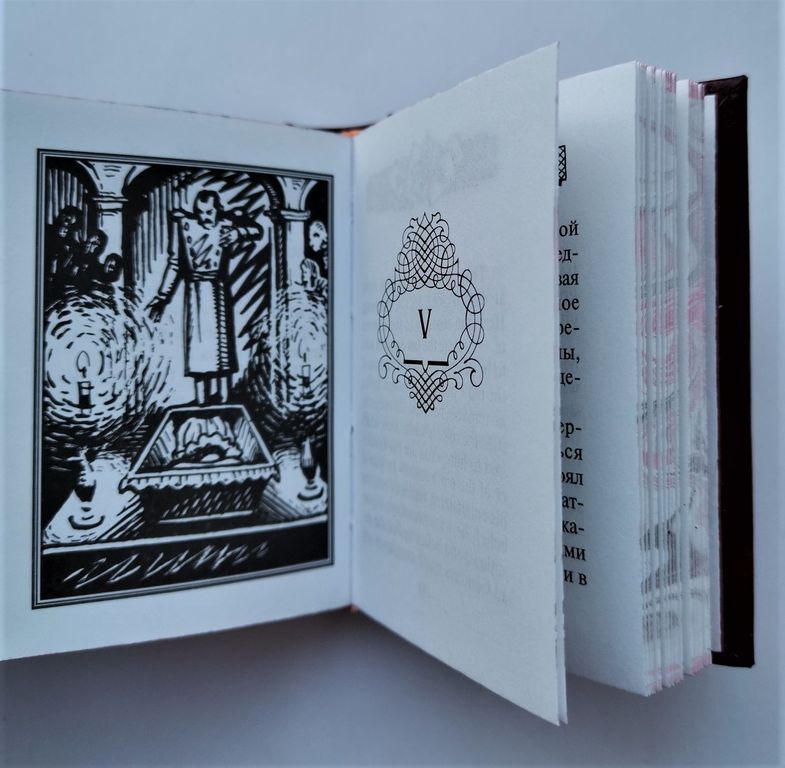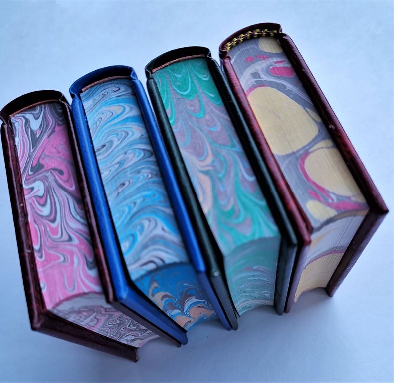 Миниатюрная книга в ручном переплете, мраморный трехсторонний обрез.