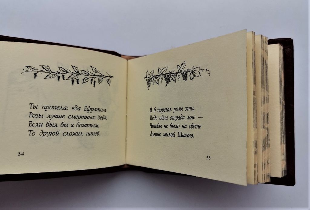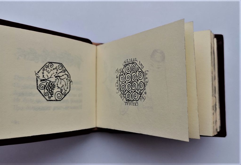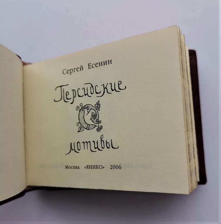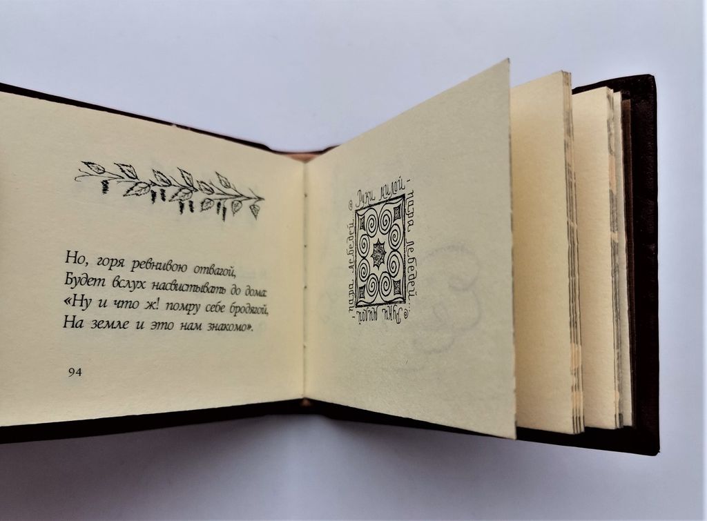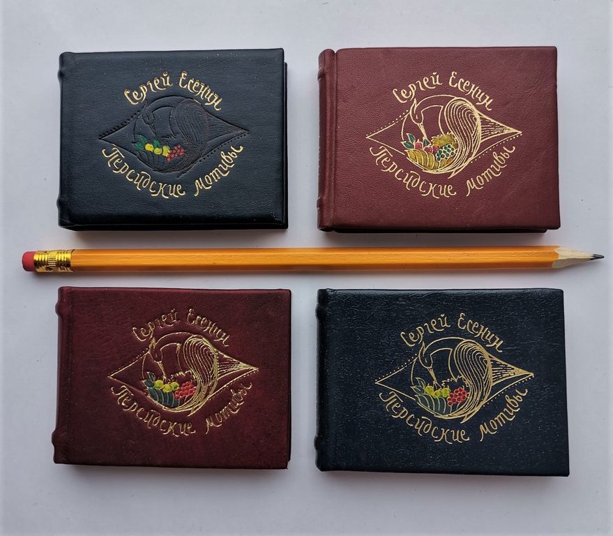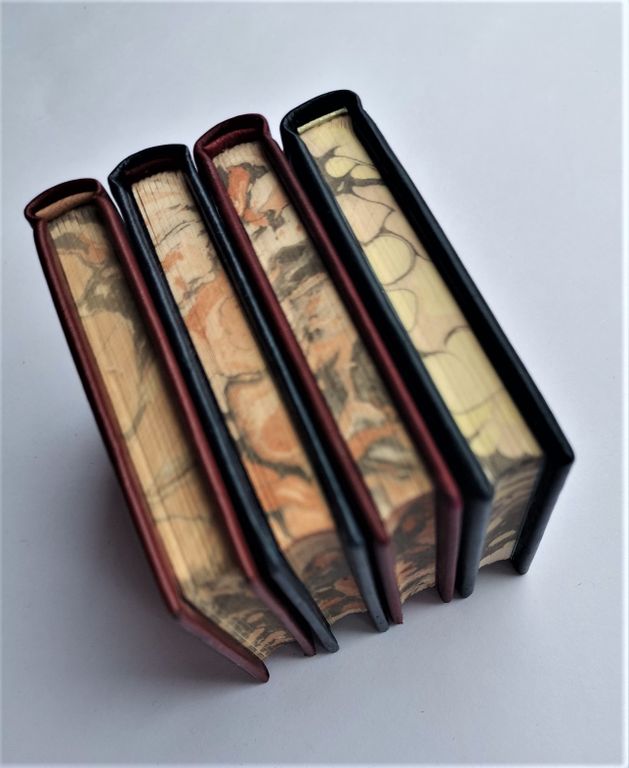 Миниатюрная книга в ручном переплете, мраморный трехсторонний обрез.