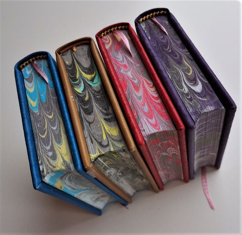 Ручной кожаный переплет, мраморный трехсторонний обрез.