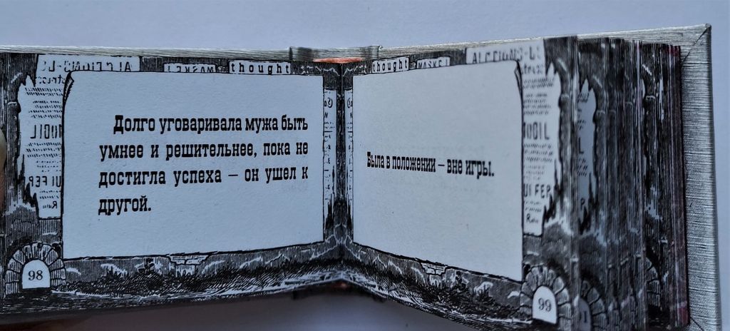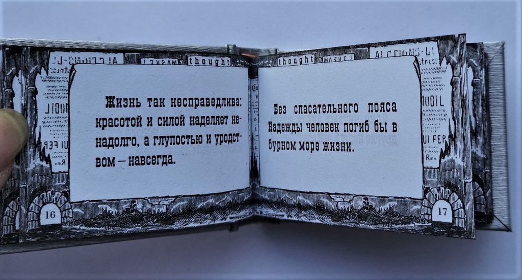 Миниатюрная книга в ручном переплете, мраморный трехсторонний обрез.